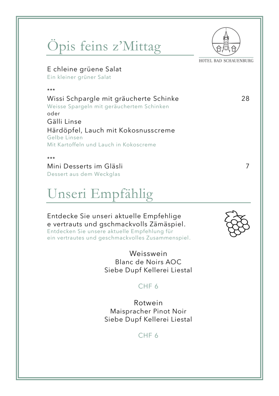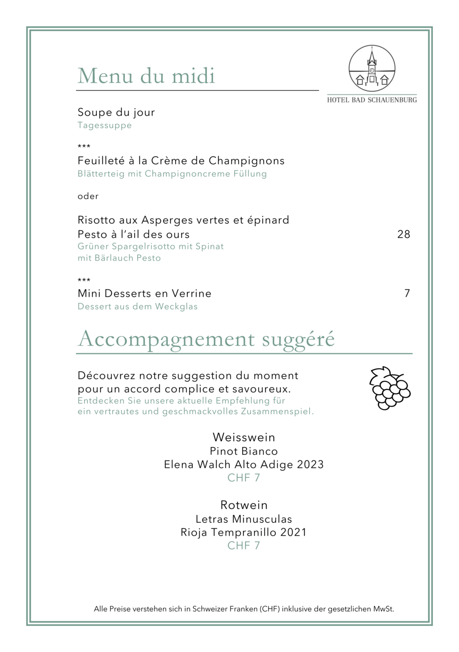 In the main building, you will be treated at lunchtime in the Brasserie Bad Schauenburg (classic French cuisine), while the Economie building houses the rustic Bistro Zum Schauenegg (authentic regional country cuisine). Please check the opening hours of both venues on our website.